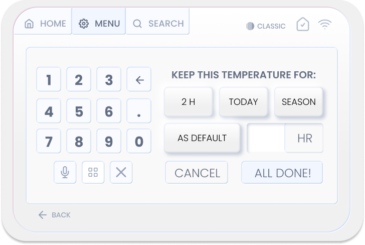 New HOMY is a universally designed thermostat that allows users to control and adjust the temperature to fit their preferences and habits. We believe that a truly user-friendly thermostat can’t be designed for just one type of user. Instead, it should create an intuitive and enjoyable user experience for everyone.
